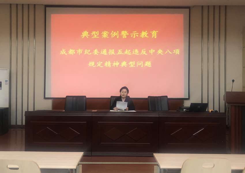 开展典型案例警示教育,对成都市纪委通报五起违反中央八项规定精神典型问题进行了通报,对全体教职工进行了警示教育,警醒全体教职工要以案为鉴、深刻反思,加强规矩意识,做到防微杜渐、警钟长鸣。